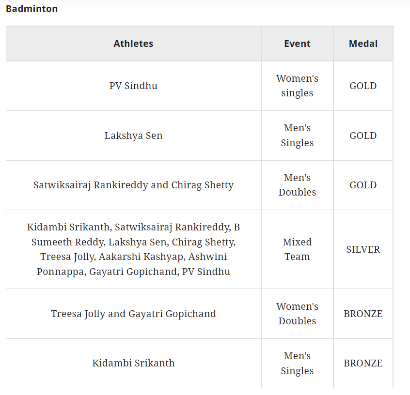 India ended the 2022 Commonwealth Games on Monday with 61 medals: 22 gold, 16 silver and 23 bronze medals.