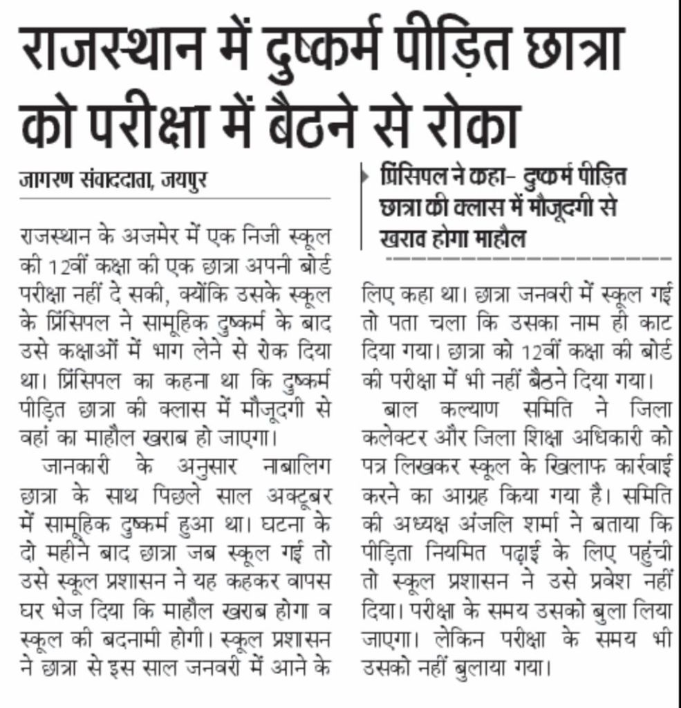रेप पीड़िता के बजाय रेप के दोषीयों का समाज से बहिष्कार होना चाहिए ना कि उस नाबालिग छात्रा का जिसके साथ गैंगरेप हुआ। किसी भी लड़की या महिला का रेप होने के बाद वो शारीरिक और मानसिक तौर पर पहले ही टूट चुकी होती है और जो बचा हिम्मत परिवार उसे सपोर्ट करके देता है लेकिन हमारा समाज उसे भी ताने मारकर उस लड़की को आत्महत्या करने पर मजबूर कर देता है, अगर वो लड़की आत्महत्या नहीं भी करे तो समाज के द्वारा उसे उस बंधन में जकड़ दिया जाता है जहाँ वो सांस तो ले लेकिन जिंदा मूर्ति के समान रहे। उसके घर से बाहर जाने पर प्रतिबंध, स्कूल जाने पर पाबंदी, बाजार जाने पर पाबंदी और यहाँ तक की खुद प्रिंसिपल उसे परिक्षा में ना बैठने दे, घर से बाहर निकले तो लोग ऐसे देखें जैसे किसी अजनबी को देख लिया हो। एनसीआरबी के मुताबिक भारत में हर दो मिनट में 3 रेप की घटनाएं होती है। ये सिर्फ रजिस्टर मामले है। हमारे समाज के साथ हमारा कानून भी ढ़ीला और लाचार है, निर्भया गैंग रेप के दोषियों को 11 साल बाद सजा सुनाया गया।