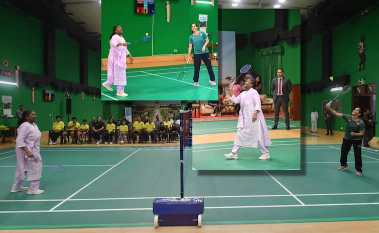 President Droupadi Murmu and Saina Nehwal Plays Badminton: राष्ट्रपति द्रौपदी मुर्मू देश से जुड़े कई कामों में व्यस्त रहती हैं. आपने उनका खेल या खेलों के प्रति प्रेम शायद ही कभी देखा होगा. लेकिन सोशल मीडिया पर एक वीडियो वायरल हो रहा है. जिसमें राष्ट्रपति द्रौपदी मुर्मू युवा खिलाड़ी की तरह बैडमिंटन खेलती नजर आईं. जिसके बाद यह वीडियो सोशल मीडिया पर तुरंत वायरल हो गया. उन्होंने बैडमिंटन कोर्ट पर ओलंपिक पदक विजेता मिस साइना नेहवाल के साथ मुकाबला किया.