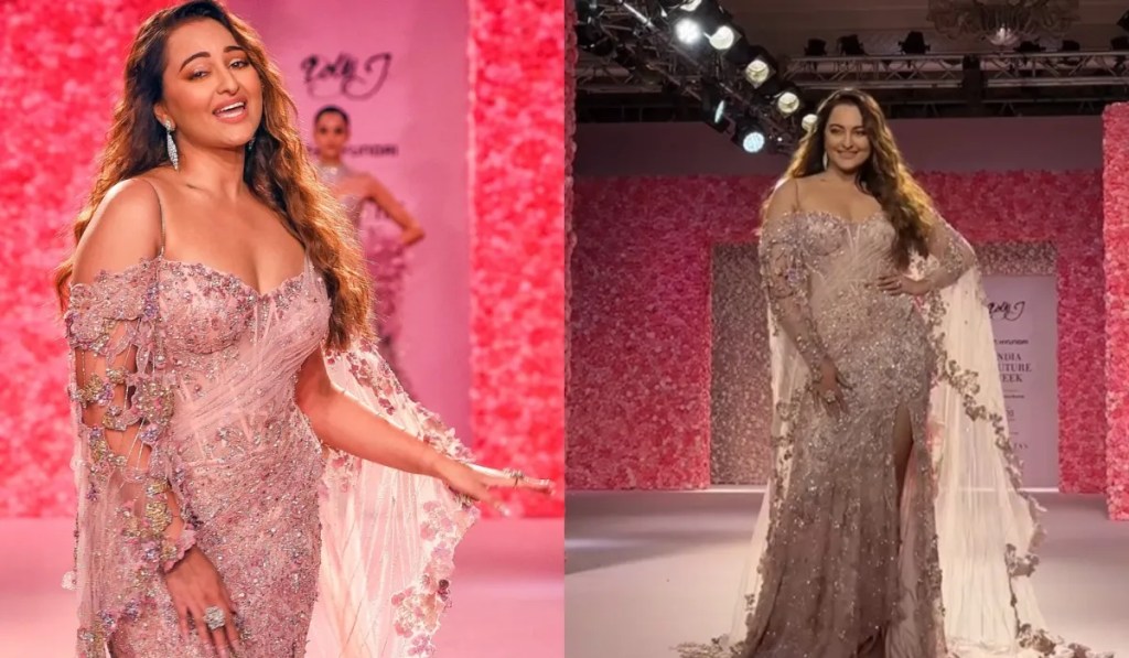 जहीर इकबाल से शादी करने के बाद सोनाक्षी सिन्हा पहली बार रैंप वॉक पर उतरतीं नजर आईं। सोशल मीडिया पर उनकी ये रैंप वॉक की वीडियो और फोटोज तेजी से वायरल हो रही हैं, जिसमें उनका दिलकश अंदाज देखने को मिल रहा है। सोनाक्षी सिन्हा ने रैंप वॉक के लिए हाई स्लिट और एम्बेलिशमेंट पींक गाउन पहना हुआ था। इस पींक गाउन में एक्ट्रेस बार्बी लग रही हैं। उनके शानदार आउटफिट को उन्होंने हील्स के साथ पेयर किया गया।