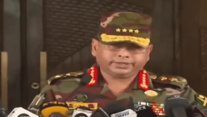 सेना प्रमुख ने प्रदर्शनकारियों से घर लौटने का आग्रह किया और पुलिस को प्रदर्शनकारियों पर गोली न चलाने का आदेश दिया। उन्होंने सरकारी नौकरियों में विवादास्पद कोटा प्रणाली के खिलाफ़ हफ़्तों तक चले घातक प्रदर्शनों में मारे गए हर प्रदर्शनकारी की मौत की गहन जांच का वादा किया। उन्होंने कहा कि अपराधियों को न्याय के कटघरे में लाया जाएगा।