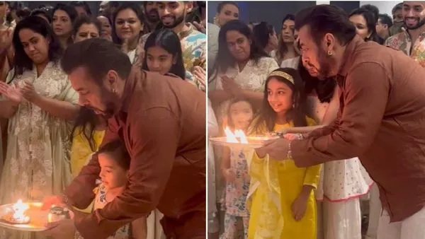 Arpita Khan sharma and Aayush Sharma, sister of Bollywood superstar Salman Khan, hosted a grand Ganesh Chaturthi celebration at her residence. The event was marked by a beautifully decorated mandap adorned with vibrant flowers and intricate designs. Salman Khan made a special appearance, performing the aarti with his niece Alvira Khan. The celebrations were attended by close friends and family, including Sohail Khan, Seema Khan, and several other prominent figures from the industry. The highlight of the evening was a live performance by a popular band, adding to the festive spirit.