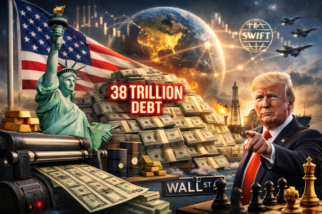 Today’s global economy rests on a striking paradox. The United States currently carries an enormous debt burden of nearly $38.3 trillion, a figure steadily moving toward twice its GDP. Every year, Washington adds roughly $1.8 trillion to its fiscal deficit—meaning the country spends far more than it earns. On top of that, the U.S. pays close to $1 trillion annually just in interest on its debt.
